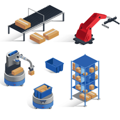Palletizers and depalletizers stack or remove products from pallets, while sorting and distribution systems organize materials for efficient processing. Packaging systems prepare materials for storage or shipment, ensuring they are protected and ready for distribution.